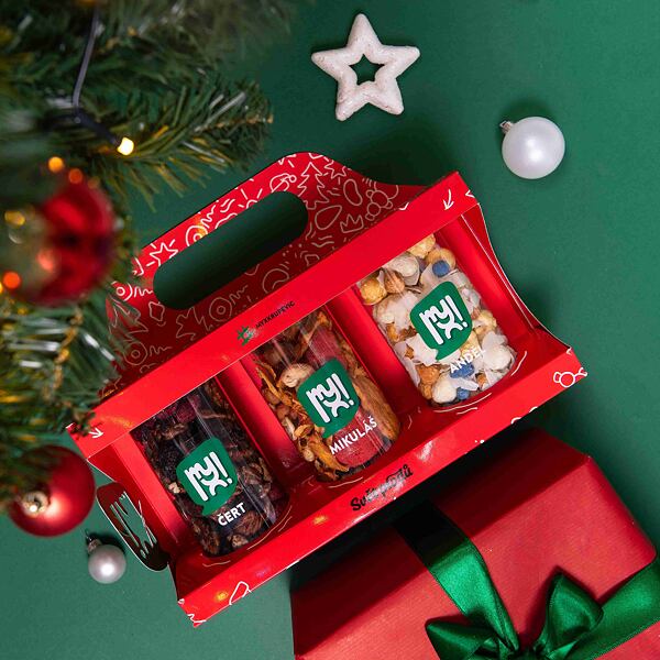 Už jste to slyšeli? Převlékli jsme MYX do vánočního, a vyřešili jsme tak originální jedlý dárek za vás! Ať už si nevíte rady s dárkem pro maminku, taťku či dědečka, máme elegantní způsob, jak se z téhle prekérní situace dostat. V single variantě vybírejte z šesti pečlivě vybraných příchutí, nebo se neupejpejte a rovnou sáhněte po celém trio balení MYXů. V něm máte možnost ochutnat neskutečných 12 produktů, které u nás můžete koupit i samostatně! Naše suroviny včetně MYXů si totiž opečováváme – do směsí nepatří vyřazené ani podřadné kousky, ale jen elita! Souhlasíte?