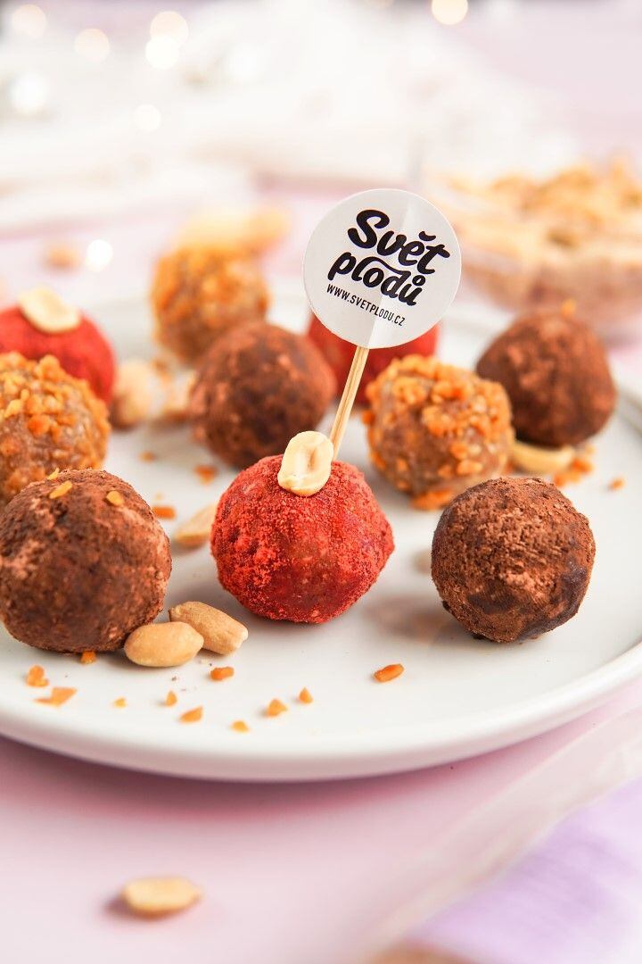 Nakonec kuličky obalíme. Zvolit můžete prášek z lyofilizovaných jahod, kousky slaného karamelu nebo kakao.