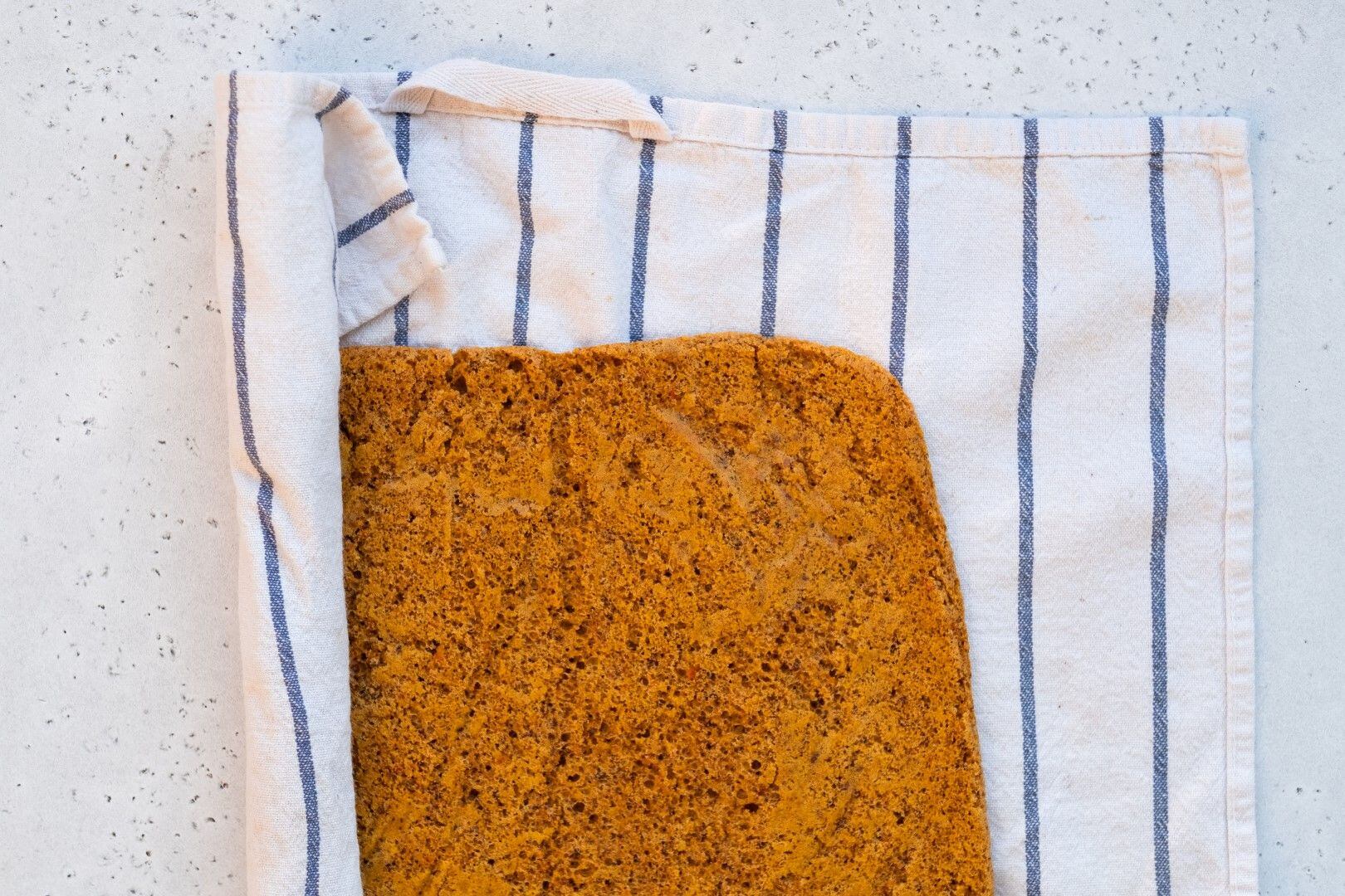 Po vytažení ihned překlopíme plát těsta na čistou utěrku a opatrně odlepíme pečicí papír. Z těsta papír může jít trochu hůře, dávejte tedy pozor, ať se nepotrhá.