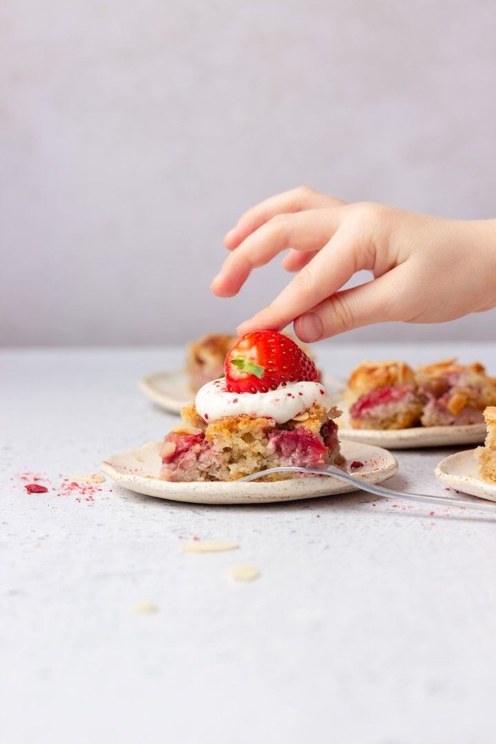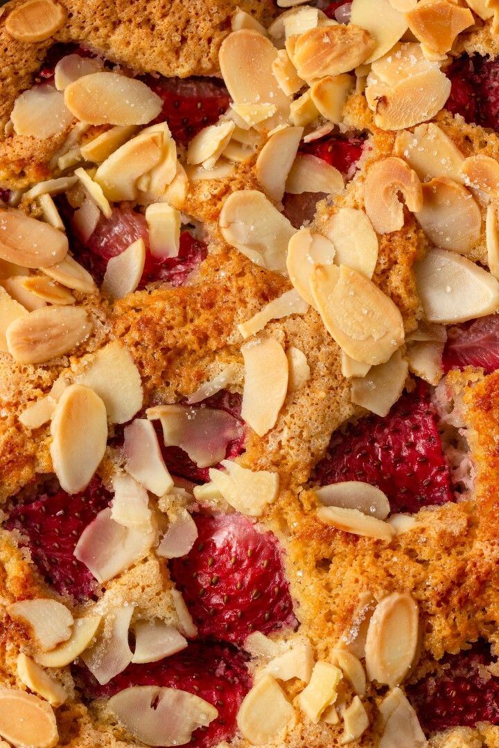 Jahodovou bublaninu z mandlové mouky můžete nakonec ještě posypat lžící cukru a péct dozlatova přibližně 35 minut. Vytvoří se tak lehká křupavá vrstva, která božsky doplní nadýchané těsto.