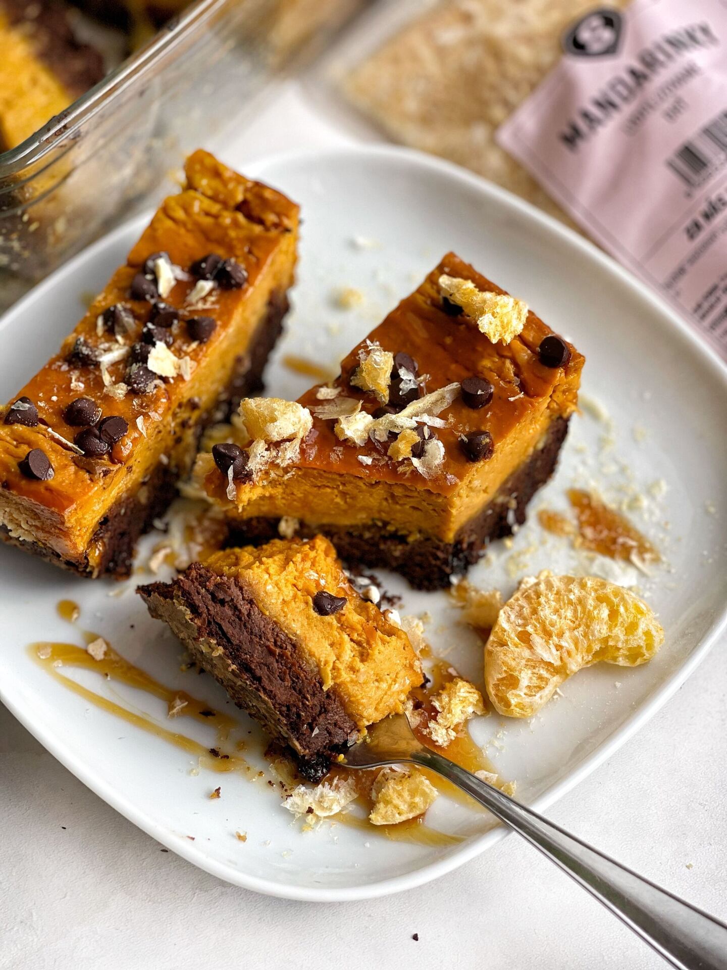 Následně smícháme všechny ingredience na tvarohovou vrstvu, do které přidáme lyofilizované mandarinky. Můžete celé kousky mandarinek lehce podrtit, nebo rovnou použít mandarinkovou drť, kterou jsme na pečení už přichystali za vás.
