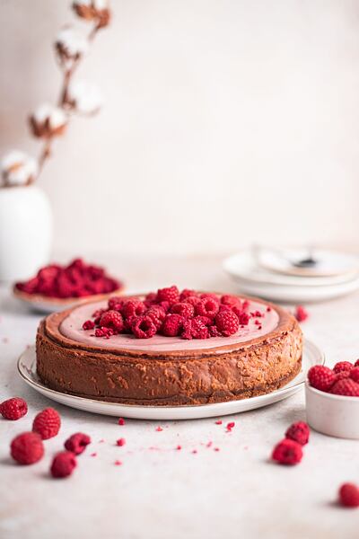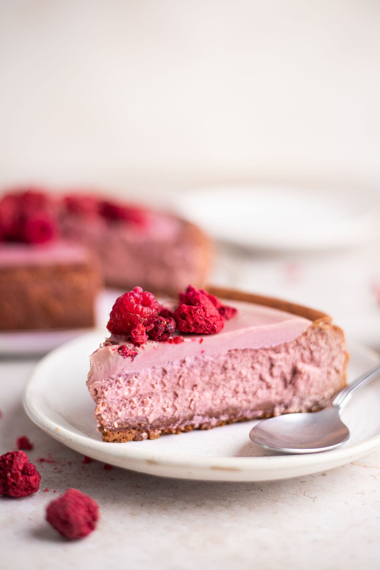 Nakonec cheesecake ozdobte čerstvými nebo lyofilizovanými malinami a po zatuhnutí polevy můžete servírovat! Mňam. Už se taky vidíte s kafíčkem v ruce a s kouskem tohoto božského malinového cheesecaku na talířku?