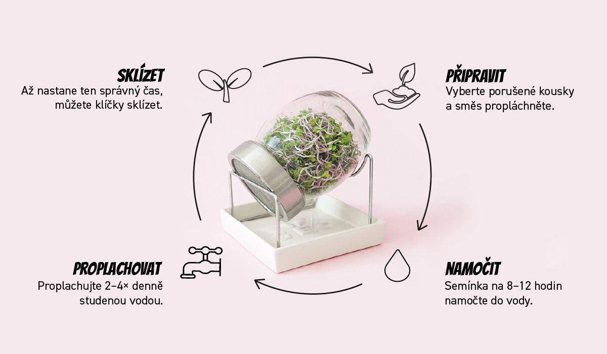 Může se to zdát složité, ale ve skutečnosti je celý proces tak jednoduchý, že ho zvládnou i děti! Ve výsledku ušetříte, dodáte tělu živiny přímo z přírody a ozvláštníte svůj jídelníček. Tak nechte krabičky vitamínů v lékárně a pojďte s námi tohle jaro klíčit – připravili jsme pro vás přehledný návod, který si můžete stáhnout a vytisknout. Budete tak mít všechny tipy na klíčení vždy po ruce!