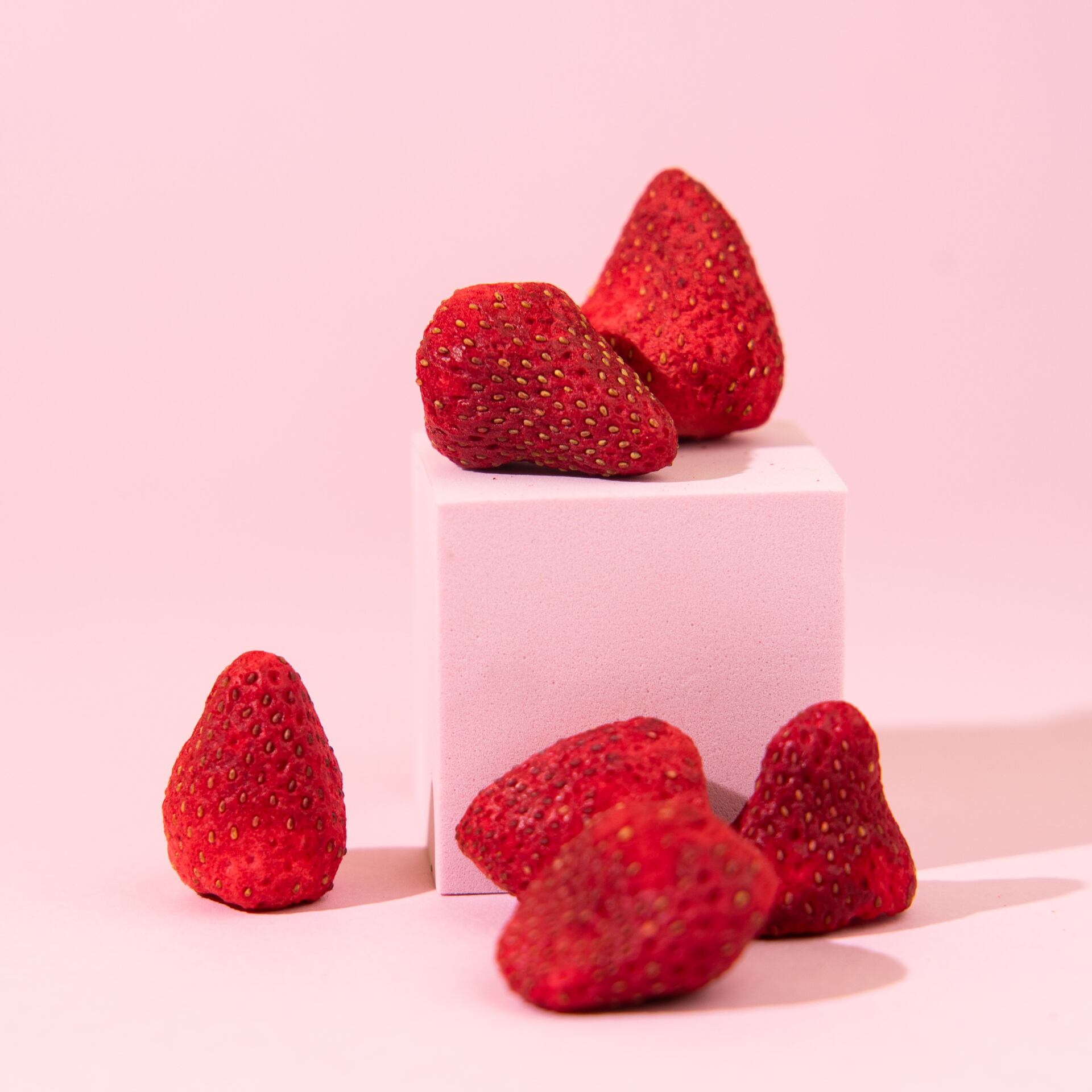 Lyofilizované celé jahody nejenže chutnají téměř jako čerstvé. Jsou také krásně křupavé! Při sušení mrazem se obsah vody v jahodách snížil asi o 99%. Právě díky sušení ve vakuu má pak ovoce dokonale křupavou texturu. Na rozdíl od řady jiných sušených jahod jsou naše lyofilizované jahody bez přidaného cukru a jiných aditiv. Milovníci kvalitní stravy si zkrátka přijdou na své. Lyofilizované jahody můžete přidat třeba do jogurtu, müsli, ovesných vloček, do smoothie nebo jimi ozdobit dort. Tak co, už se vám v hlavě rodí nápad, jak tyto výtečné lyofilizované jahody zařadit do vašeho jídelníčků? Mňam, mňam.