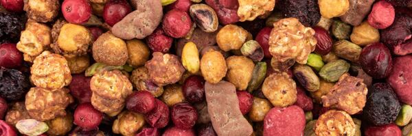 Je přesně takový jako opravdová láska – plný rozmanitých chutí, barev a sladkých i kyselkavých tónů. V jedinečné směsi najdete přírodní pistácie, lyofilizované ovoce, ale také lískové ořechy ve vanilkové krustě, kokos a maliny v čokoládě a jako sladkou tečku na konec popcorn s příchutí slaného karamelu!