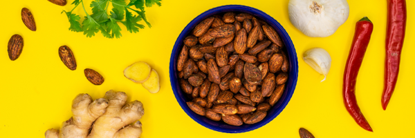 Konečně pořádně kořeněné pražené mandle. Jejich chuť rozhodně není jen pálivá, ale hraje celou paletou chutí bylinek a koření. Zpočátku ucítíte sladké skořicové tóny, které vystřídá jemný tymián a na závěr přichází pikantní kombinace chilli, česneku a zázvoru. Tuhle chuť zkrátka musíte ochutnat a posoudit sami. Můžete je chroupat jen tak, nebo je nasekat na menší kousky a ozdobit s nimi svůj oblíbený salát.