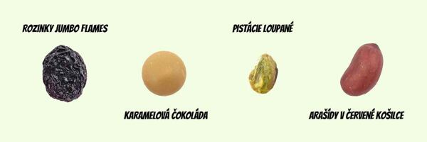 Tento MYX jsme připravili přímo ve Světě plodů. Přimíchali jsme do něj 30 % rozinek, 25 % arašídů, 20 % loupaných pistácií a také 25 % karamelové čokolády. Všechny ingredience jsme pečlivě ochutnali a myslíme si, že spolu neskutečně dobře ladí. MYX obsahuje různé chutě, a tak si každý přijde na své.