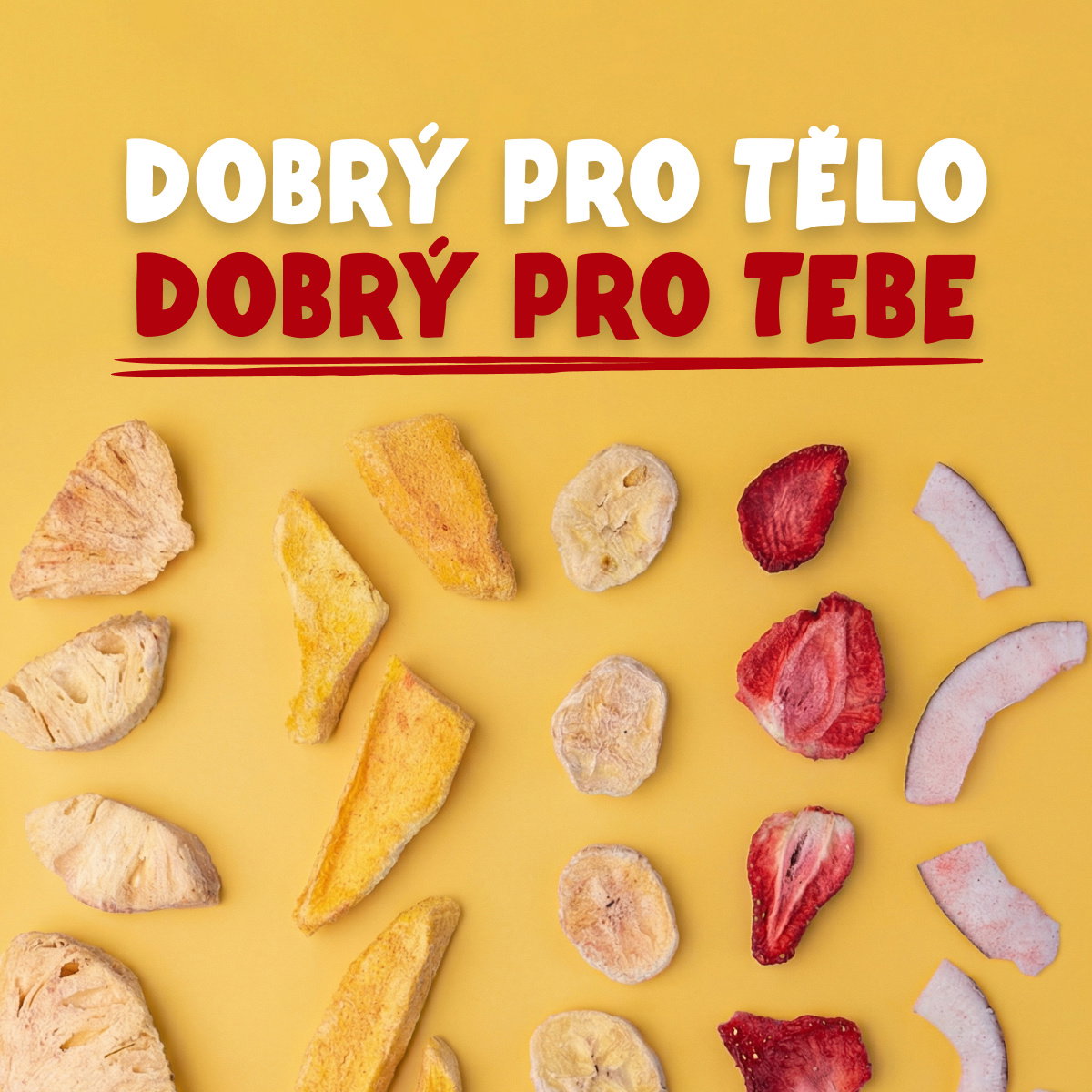 Lyofilizované ovoce vydrží mnohem déle než klasické čerstvé. Právě proto nás napadlo vytvořit tento MYX, který vydrží v jakémkoli počasí. Lyofilizace je vlastně sušení mrazem. Z produktů se speciální metodou odstraňuje voda, ale všechny živiny i čerstvá chuť zůstávají na svém místě. Díky tomu na vás po otevření balíčku dýchne opravdová vůně letního ovoce a sladké tóny kokosu. Každá surovina navíc dokonale křupe. MYX je nejen plný zdravého ovoce, ale také jedinečných chutí a svěžích barev. Léto si tak konečně můžete užít i uprostřed sněhové bouře nebo deštivého dne.