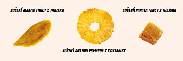 „Ananas, mango a papaya patří mezi nejoblíbenější tropické ovoce, a proto jsem si s tímto výběrem dal opravdu záležet. Ovoce dozrálo na plantážích na slunci, až pak mohlo být sklizeno a na stejném místě i usušeno a odesláno na náš sklad. Díky dozrání voní a chutná lépe než čerstvé ze supermarketu. Navíc díky rychlému a kvalitnímu zpracování nebylo třeba žádných aditiv. Takhle voní snídaně v tropech a vy ji teď můžete mít každý den!"