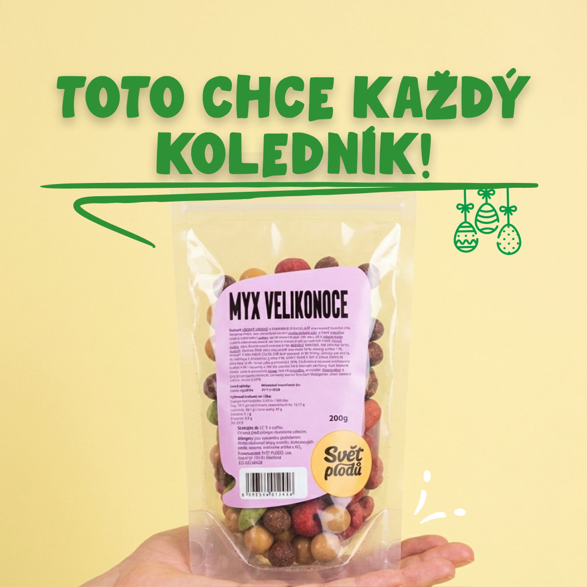 Hody, hody, šup sem s plody! Ořechy, ovoce a čokoláda, tento MYX je opravdu plný specialit, které jen tak někde nenajdeš. Všichni koledníci si mě budou mezi sebou závidět, ale ani ostatní mlsouni neodolají. Jsem prostě pomlázka snů.