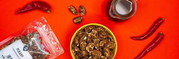 Ořechy, které vás vystřelí z bot? Rozhodně pálivé wasabi oříšky nebo ořechy s chilli. Naše arašídy ve wasabi těstíčku zní divoce, ale jsou variantou spíše pro příznivce jemně pikantních snacků. Zato pekany v javorovém sirupu s chilli se tváři poněkud nevinně, ale ve skutečnosti se z nich méně ostříleným jedincům může klidně zatočit hlava. Už víte, na kterých z nich otestujete svou odolnost?