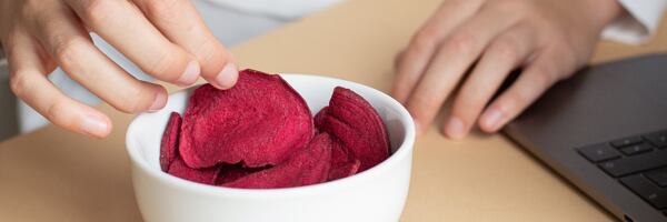 Kdo by nemiloval slané dobroty! Jak si ale zamlsat bez výčitek? Stačí sáhnout po zdravější alternativě. Tadá! Představujeme chipsy z červené řepy! Rychlým vakuovým smažením získaly křupavost, díky které se z řepy stala originální zdravá a hlavně chutná svačinka. Jemně nasládlá řepa je navíc dochucená špetkou soli, čímž se podtrhla její jedinečná chuť. Tyto zeleninové chipsy se skvěle hodí samostatně, jako zdravé mlsání, ale parťáci budou také s vaším oblíbeným dipem! Řepové chipsy se rozhodně neztratí ani v kuchyni. Přidejte je do košíku a zkuste nimi ozdobit jednohubky či krémovou polévku. Uvidíte, že si nebudete stíhat olizovat prsty ani lžíci.